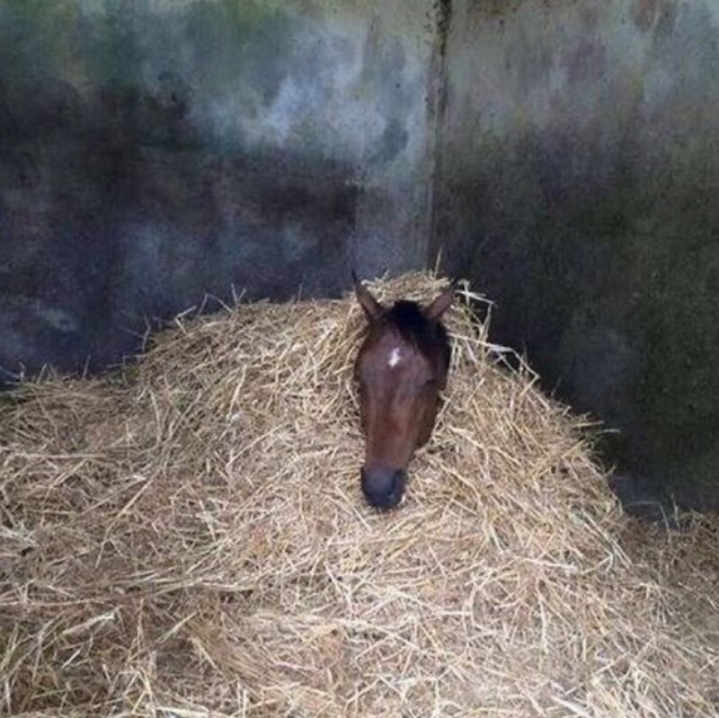 Лошадь приготовилась к ночному сну