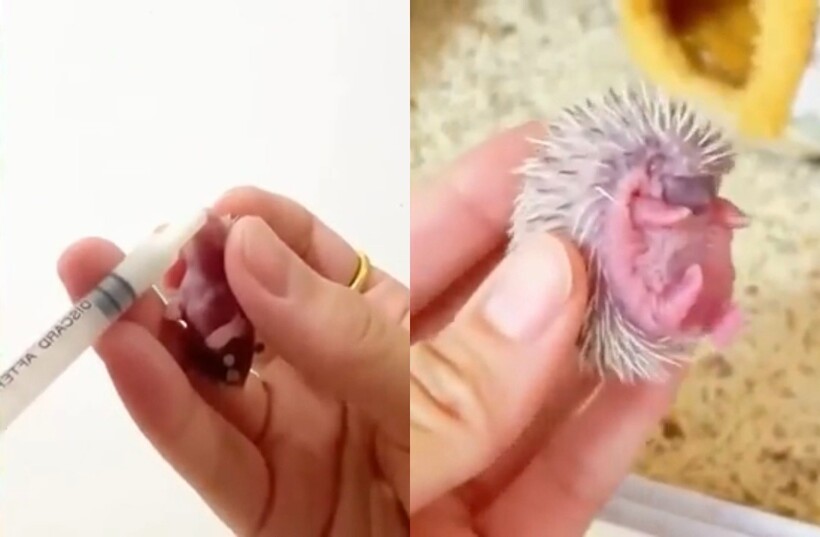 Видеоролик ниже рассказывает историю такого ежика. Девушка подобрала его на улице, при этом она совершенно не поняла, кто перед ней. Но можно сказать наверняка, что она спасла малышу жизнь, ведь в одиночестве без матери ежик наверняка бы погиб.