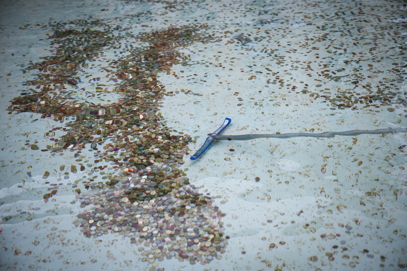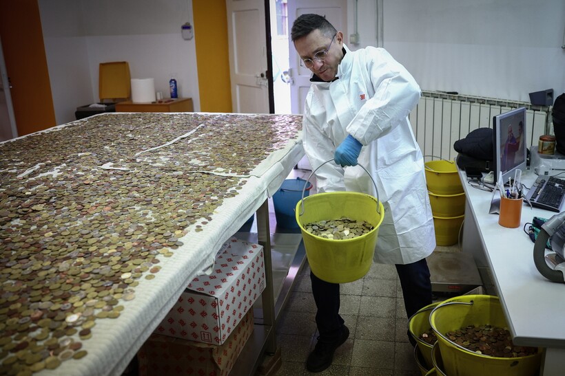 Длинными палками они вытаскивают монеты из фонтана и отправляют их в организацию Caritas
