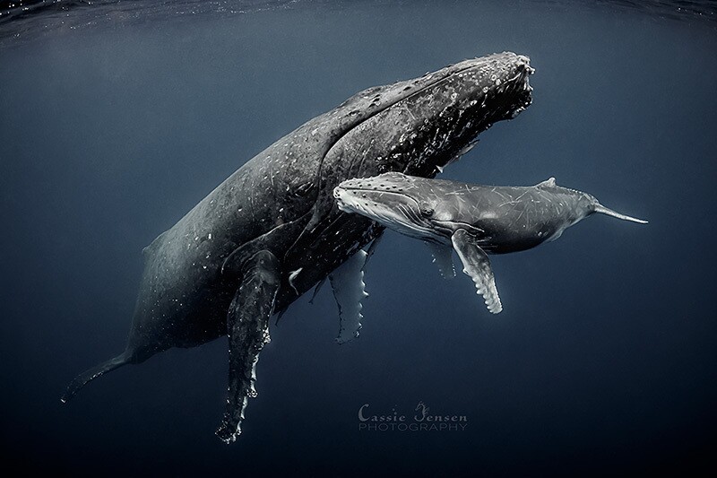 Так что хвост над водой помогает ей не только сохранить прохладу, но и следить за своим детенышем. Вероятно, в таком положении она ест сама, а также кормит малыша. Китенок может перекусить молоком, всплыть на поверхность, чтобы сделать вдох, а затем вернуться к трапезе.