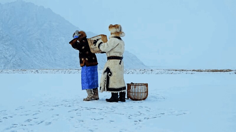 Одно из последних видео показывает неспешное приготовление завтрака в их семье. Утром пара идет к реке, чтобы добыть лед для чая. Лед они складывают в араг ― это специальная корзина, которая есть у всех кочевых монголов. Летом она служит для сбора мусора, а зимой ― для сбора льда.