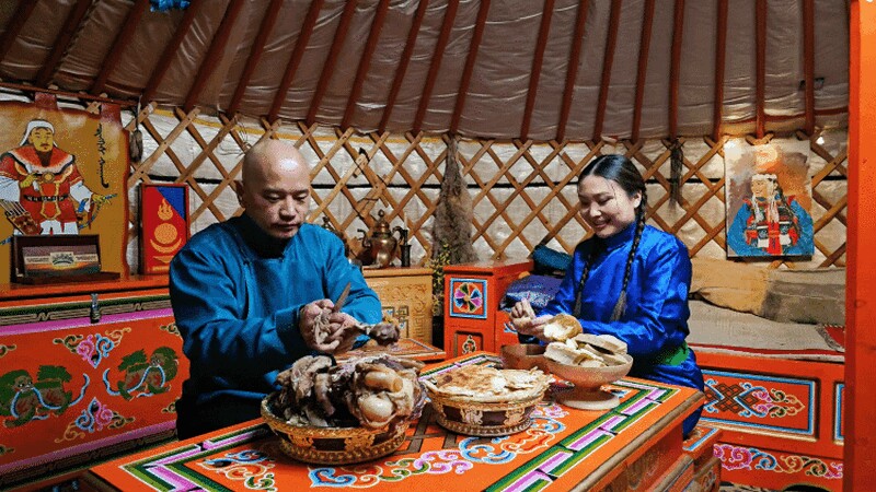 Вернувшись в юрту, они топят лед и заваривают из него горячий сутэй цай ― это традиционный монгольский чай. Прямо в него они добавляют вчерашнее мясо и лепешки: горячая жидкость согревает всю еду, которая остыла за ночь. Кстати, о других необычных видах чая мы рассказывали в этом материале.