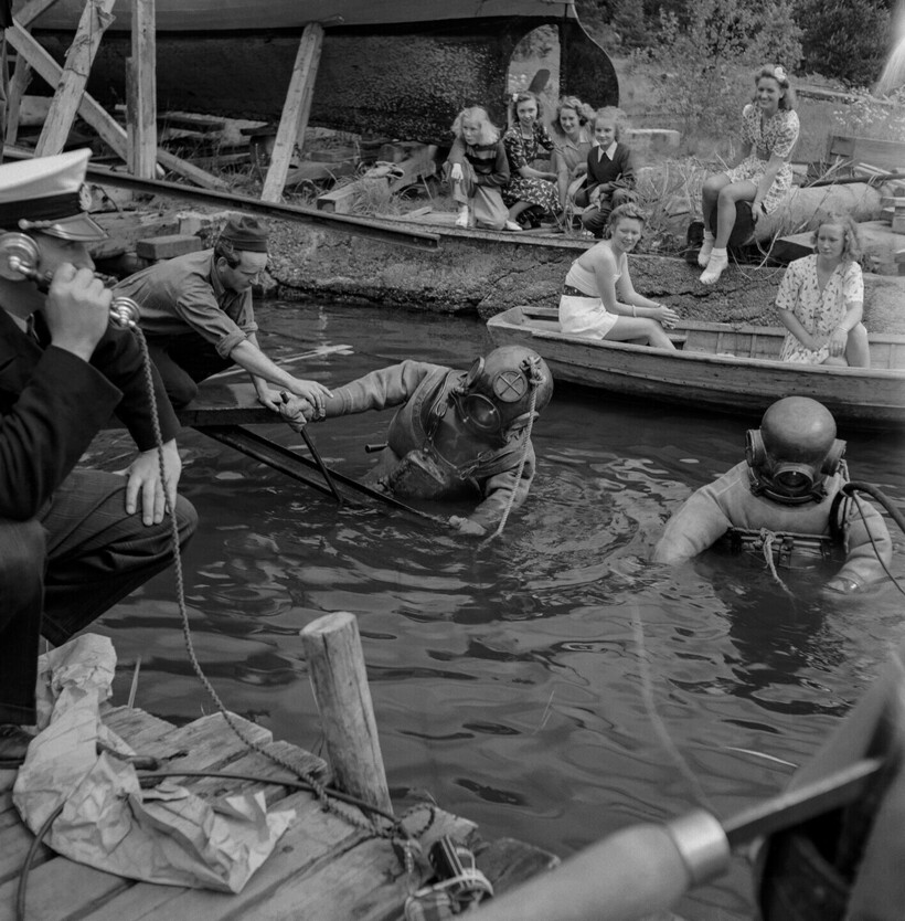 Люди всегда мечтали спуститься на глубины океана: мы рассказывали, что первые водолазные костюмы появились еще в XVIII веке. Конечно, о современных приспособлениях для погружений тогда даже не могли и мечтать. Более того, о них не могли мечтать и восемь десятилетий назад. Мы отыскали интересные фотографии Леннарта Нильсана, шведского фотографа, который запечатлел открытие школы дайвинга в Стокгольме в середине 1940-х годов. Его снимки прекрасно демонстрируют, как выглядели костюмы для погружения в воду в те времена.
