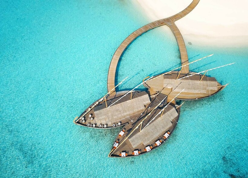 В меню à la carte — современное изложение традиционных мальдивских вкусностей в виде всевозможных вариаций мезе, супов и салатов. И, наконец, меню по мотивам Дороги специй, в котором представлены такие блюда, как индонезийский ренданг из говядины, индийская тикка бирьяни и южноафриканская ньяма чома — все с налетом мальдивского шарма.