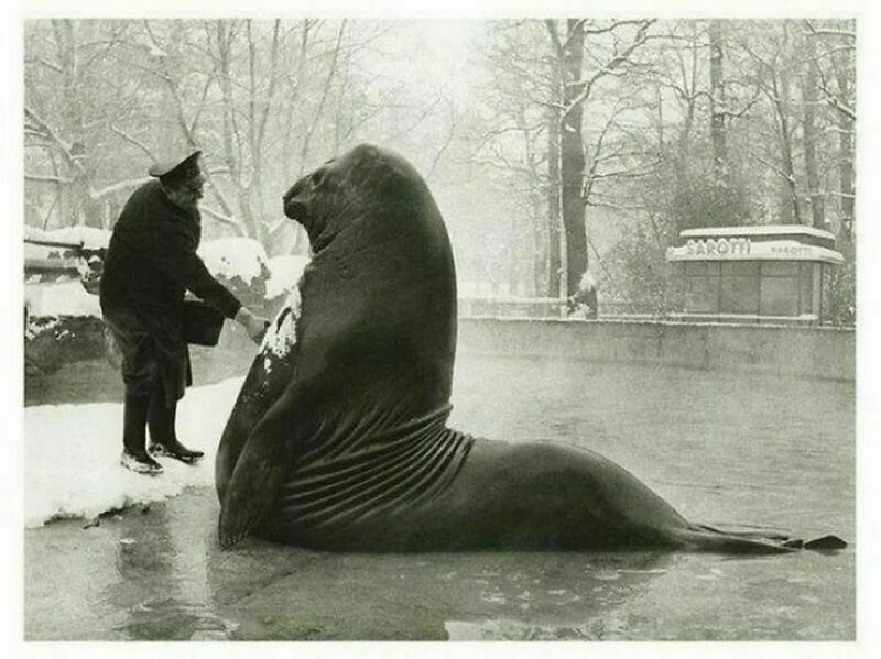 Снежная ванна у морского слона, Берлинский зоопарк, 1930 гг.