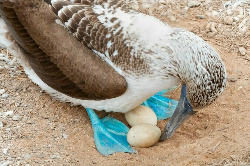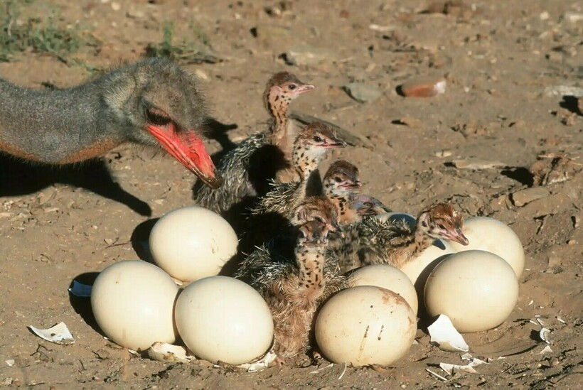 Страус у своего гнезда: одно страусиное яйцо весит 1,35 кг
