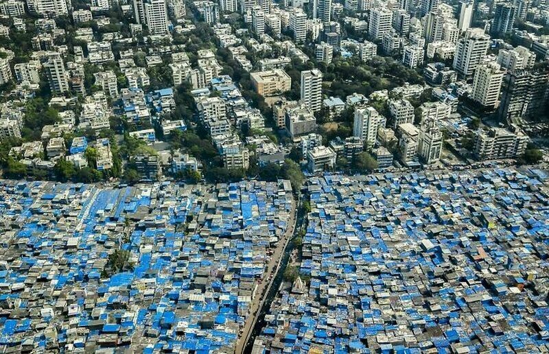 Трущобы Мумбаи рядом со спальным районом: социальное неравенство налицо