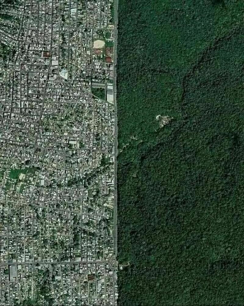 Город Манаус в Бразилии и его граница с амазонским лесом
