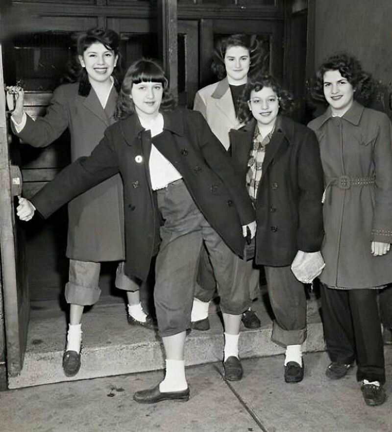 Школьниц отправили домой, так как они пришли на уроки в брюках, Чикаго, 1946