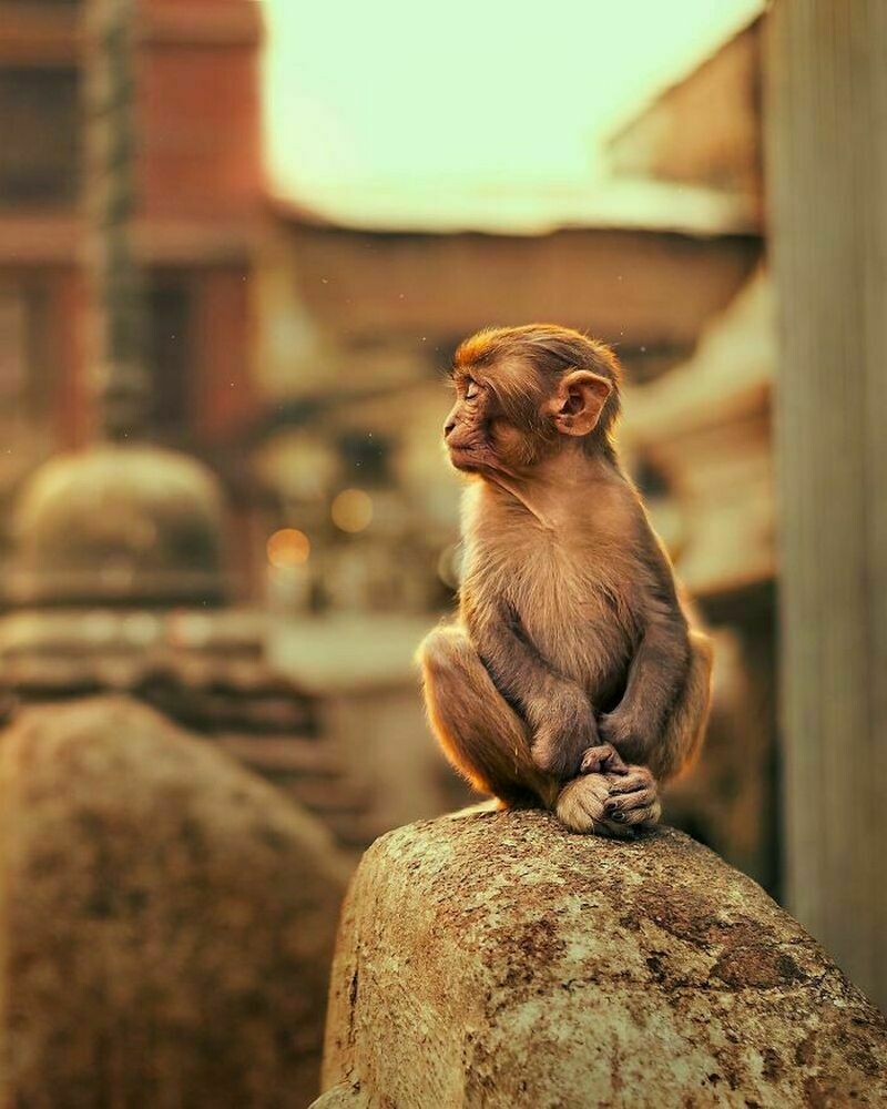 Его самый любимый снимок сделан в Непале: это обезьянка, которая баюкает детеныша на закате
