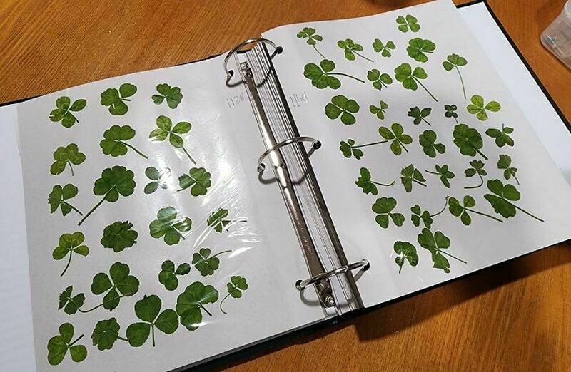 Девятилетний школьник собирает клевер-четырехлистник и хранит все находки в папке