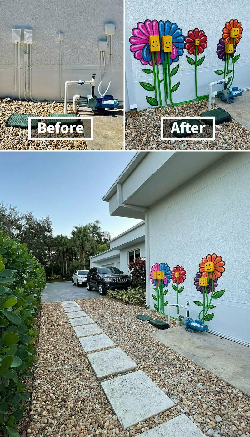 В итоге в его творениях невозможно узнать трубы, столбы или бетонные выступы
