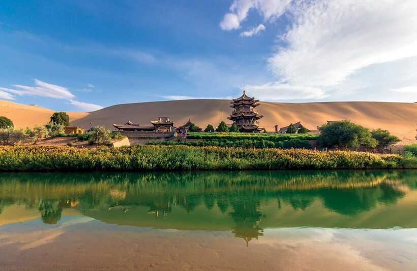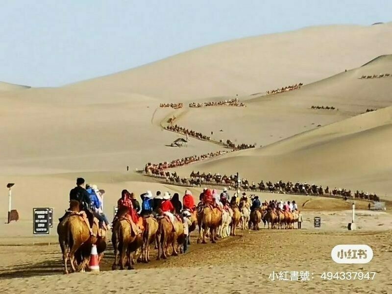 Каждый год на майские праздники миллионы китайцев едут в мини-путешествия. Туристические места настолько переполнены, что иногда администрация просит не приезжать гостей. Одно из самых любимых мест для поездки ― Природный парк Mingsha Mountain & Crescent Lake в пустыне Кумтаг. Красивые горы из песка, возле которых лежит озеро в форме полумесяца, давно стали туристической достопримечательностью.