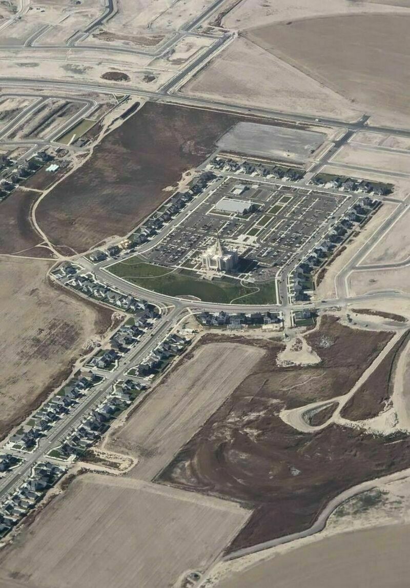 Вид с высоты на храм в американском городе Саратога-Спрингс