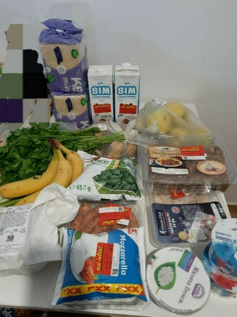 На этот набор продуктов в магазине Бухареста, Румыния, потрачено 32 доллара