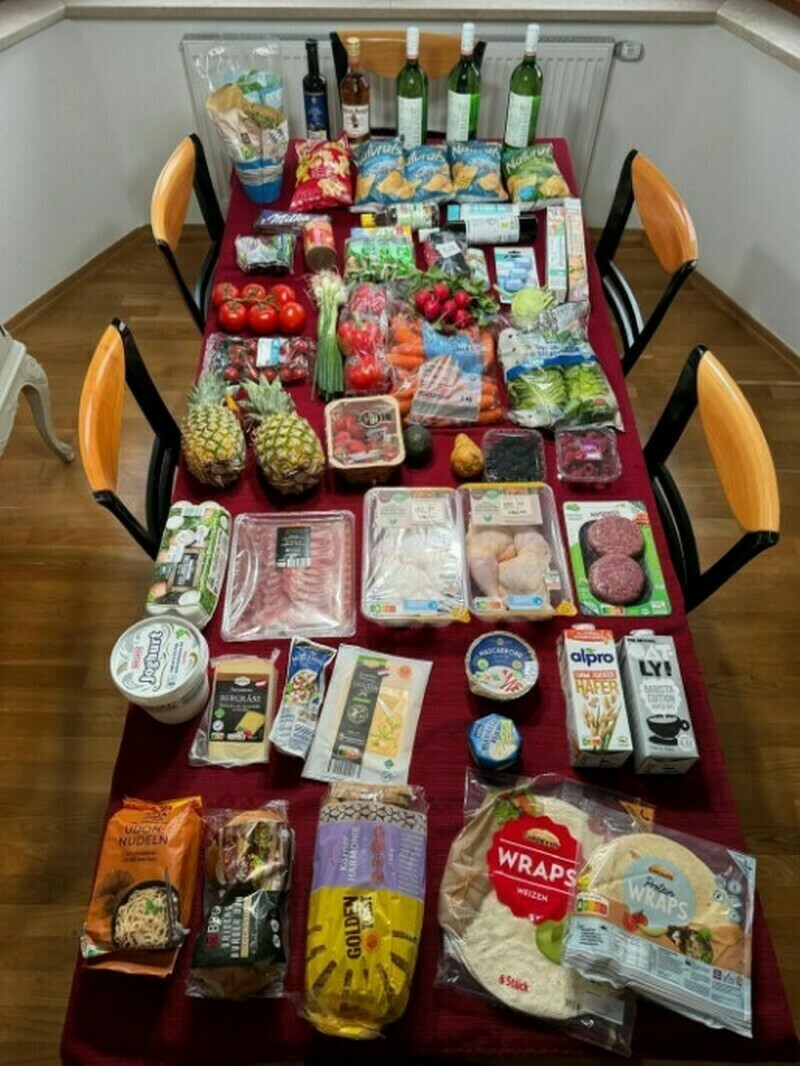 Многие наверняка планируют примерный бюджет на неделю и составляют план покупок. Эта тема всегда была актуальна не только у обычных людей, но и у художников: мы рассказывали о проекте «Голодная планета» от фотографа, который запечатлел семьи из разных стран и их продуктовые корзины. Пользователей онлайн-площадки Reddit пару месяцев назад попросили показать покупки на неделю, и люди из разных уголков земного шара поделились снимками своих продуктов. Мы отобрали самые интересные и спешим вам их показать.