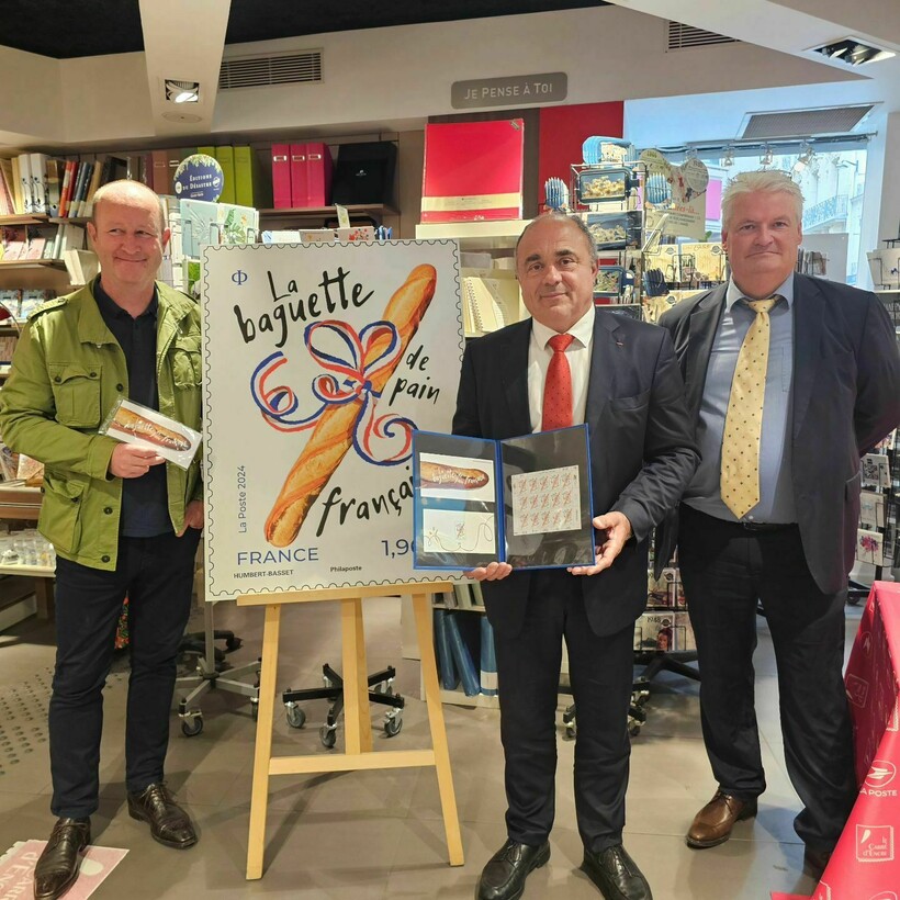 На белом фоне изображен хлеб, подвязанный бантиком из ленточки в цветах французского триколора. Нашлось место и для надписи «La baguette, de pain française», которая переводится очень просто: «Багет, французский хлеб». Стоимость марки около двух евро, их было выпущено 600 тысяч. Аромат обеспечивают микрокапсулы, которые вшиты в марку: необходимо потереть рисунок и раздавить их.