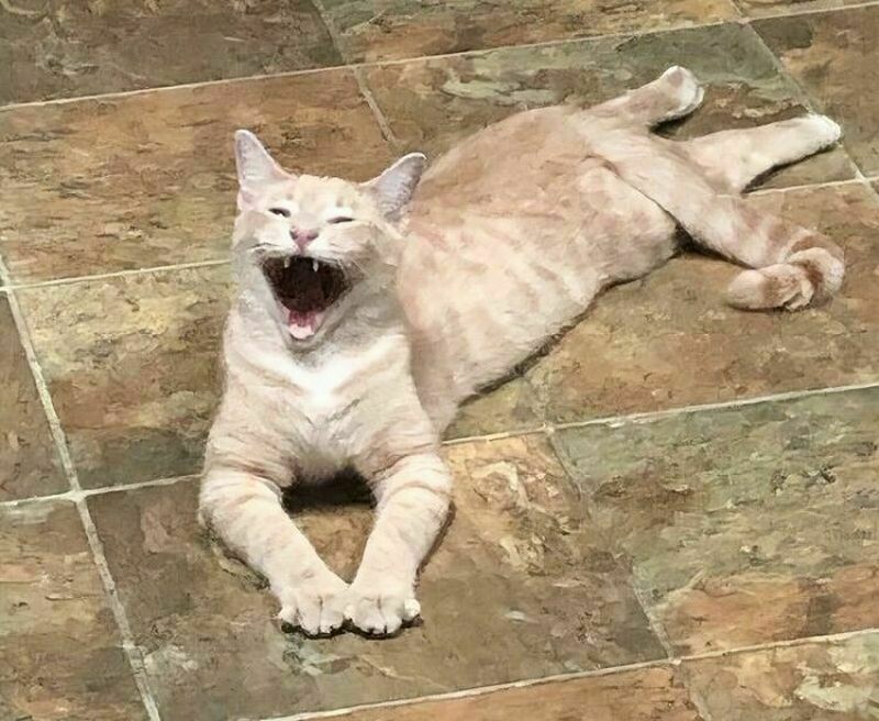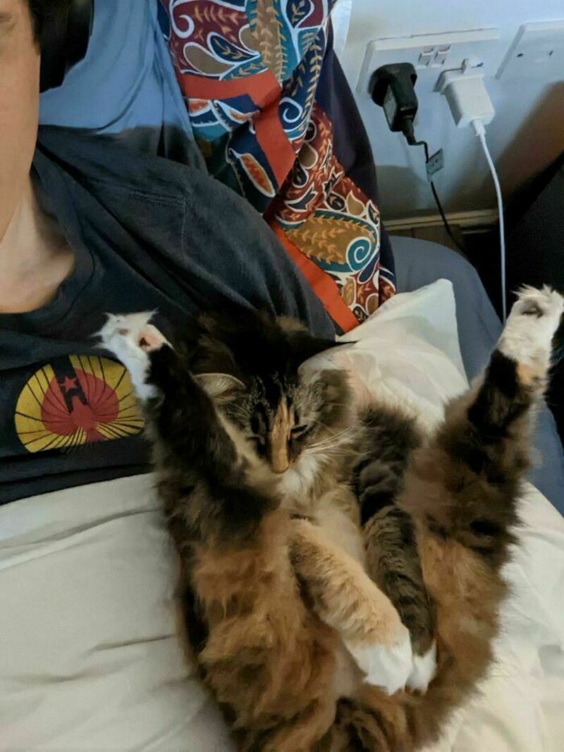 Это Грейс, она любит лежать на спине, но каждый раз не знает, куда деть ноги