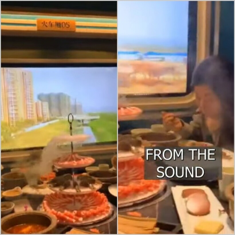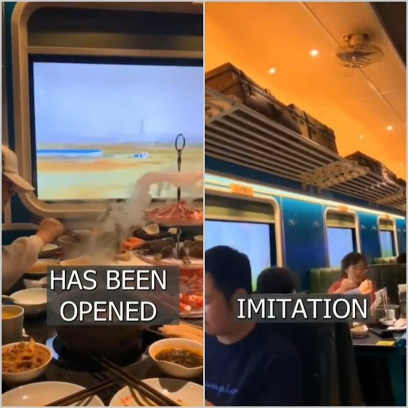 Дело в том, что это не совсем поезд, это обычное помещение, и все внутри ― лишь имитация. Но имитация очень реалистичная: из колонок звучит стук колес, а вместо окон установлены телевизоры, которые показывают бесконечные пейзажи вдоль рельс.