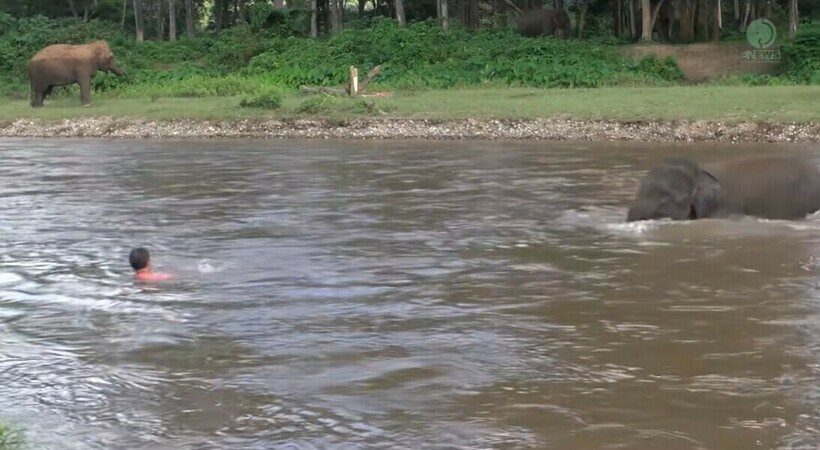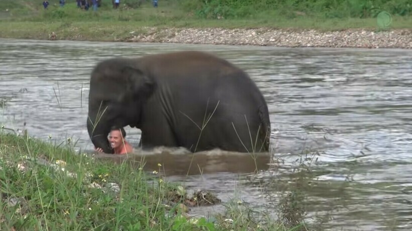 Ролик был снят в жаркий день, и Дэррик на самом деле просто хотел искупаться. Однако его подопечная, видимо, решила, что мужчине нужна помощь. Она бросилась в реку, добежала до него и начала вытаскивать его из воды. Кхам-Лха дотащила мужчину до берега и нависла над ним всем своим телом. Это поза безопасна для человека: слоны так часто делают со своими смотрителями, чтобы выказать свою любовь и признательность.