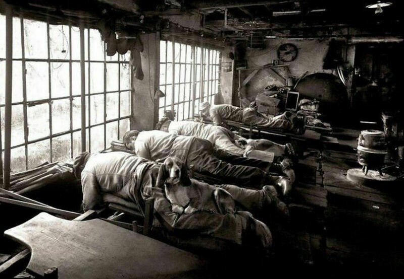 У них болели спины после многочасовой сидячей работы. Чтобы расслабиться во время отдыха, они ложились вниз лицом, а на ноги им садились собаки: так было теплее.