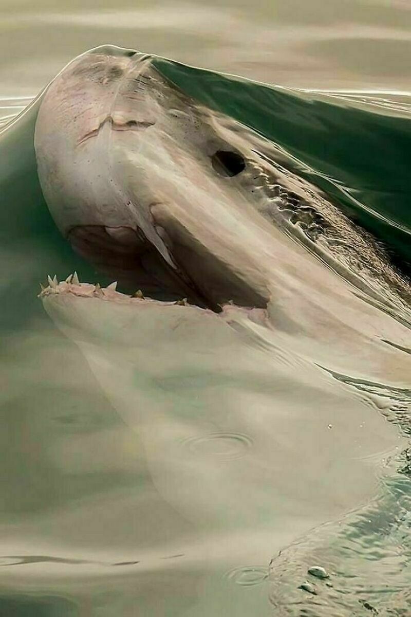 Акула за мгновение до того, как вынырнуть из воды