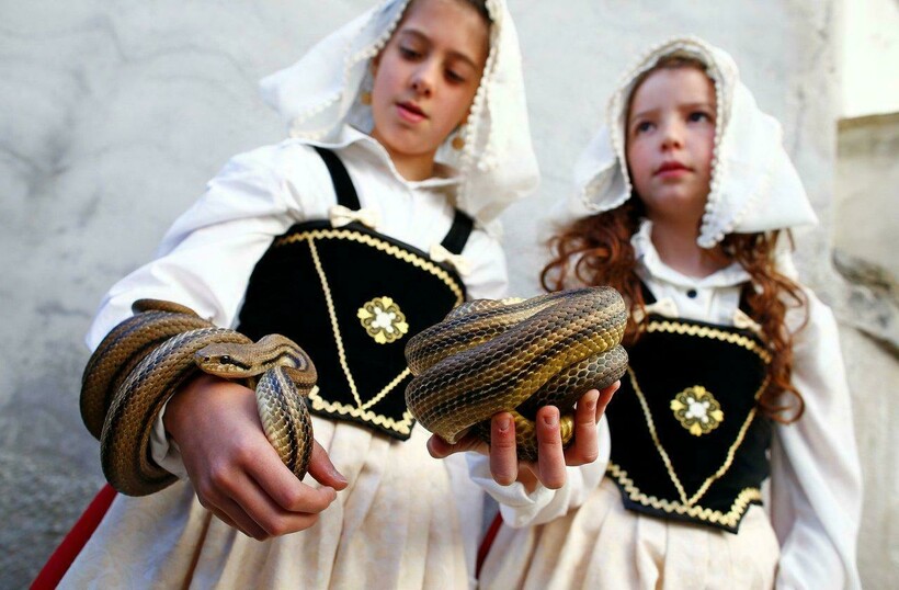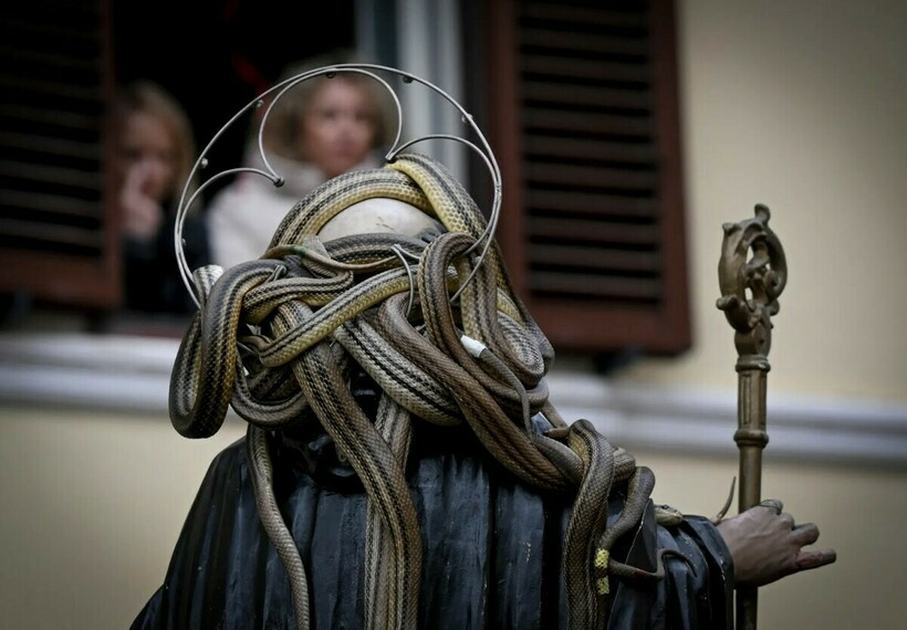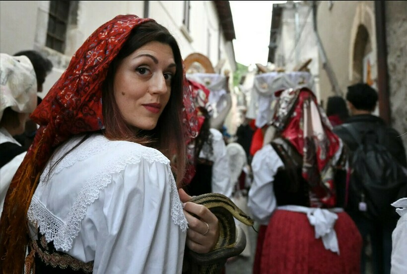 Обычно, когда речь идет про заклинателей змей, мы вспоминаем Восток, Индию, а также другие азиатские страны. Например, вот тут мы показывали заклинателя змей из Малайзии. Но в Европе также есть свои заклинатели змей, и им на протяжении веков выказывали свое уважение и почтение другие люди. Живут они в небольшой итальянской деревушке Кокулло, которая лежит в горах региона Абруццо. Население здесь крохотное: чуть больше 200 человек. Но именно здесь проходит самый странный фестиваль Европы ― фестиваль ловцов змей. Каждый год 1 мая сотни туристов приезжают из соседних регионов, чтобы увидеть загадочное шествие: по улице несут статую, обвитую змеями, а за ней следуют сами заклинатели.