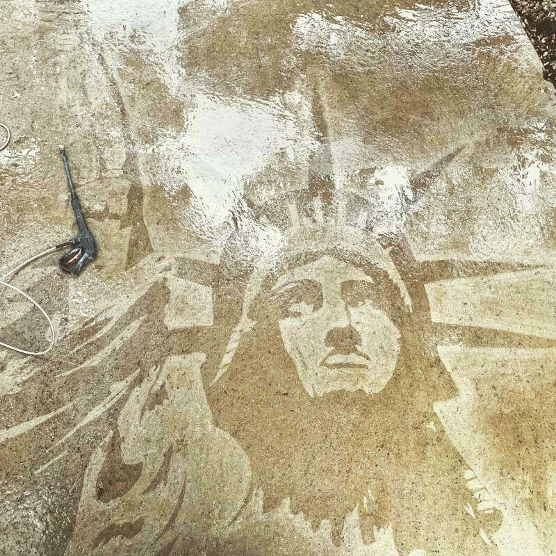 Иногда искусство создают для того, чтобы оно было разрушено. В этой эфемерности есть своя прелесть: посмотрите картины на снегу, которые созданы для того, чтобы их вновь занес снег. Сэм Уорд из Техаса тоже работает с такими инструментами, которые сложно назвать художественными. Он создает картины с помощью водомёта прямо на тротуарах, и они великолепны.