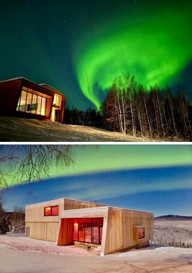 Если вы вдруг пропустили северное сияние, которое наблюдали в городах по всему миру в мае, то это можно наверстать. Правда, для этого придется отправиться далеко на север. Один из отелей, который предлагает понаблюдать за красочным природным явлением, ― это Aurora Villa, и находится он в самом сердце дикой природы Аляски.