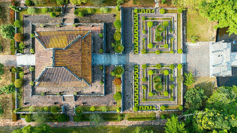 Вершина вьетнамской монархии пришлась на XIX-XX века. Империя соблюдала свои традиции, но на нее огромное влияние оказывала история Китая, а позже и западные страны. В 1802 году началась эпоха династии Нгуен: тринадцать императоров этой семьи занимали трон 143 года. Для своего правления они выбрали город Хюэ, где появилась огромная цитадель. Имперский город включал шесть кварталов и сам дворец. Это была неприступная крепость, обнесенная рвом и стеной, попасть в которую можно было только по мостам. В начале 1990-х годов цитадель стала Всемирным объектом наследия ЮНЕСКО. Кроме дворца вьетнамские императоры уделяли огромное внимание своим усыпальницам: строили их годами. Сегодня недалеко от Хюэ возвышается восемь огромных гробниц, где покоятся императоры. Вьетнамский фотограф Нгуен Ву Фуок запечатлел их все с дрона.