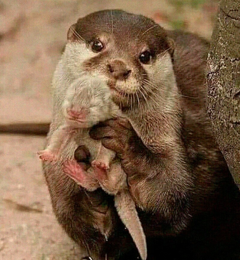 Если вдруг ваше настроение поднялось недостаточно, то посмотрите на выдру, которая показывает своего новорожденного малыша