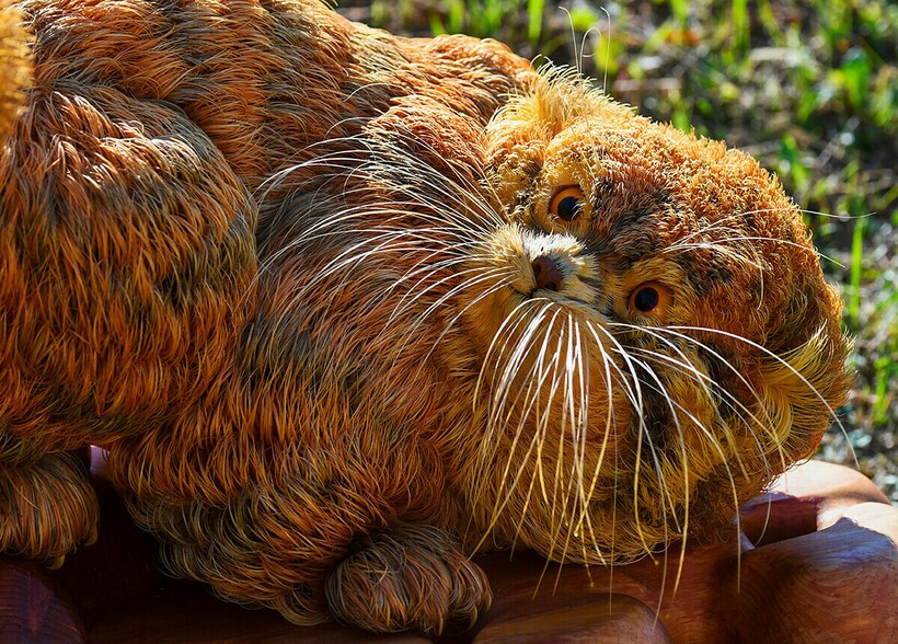 Например, манул с фото ниже состоит из миллиона деталей, и делал его мастер почти пять лет!