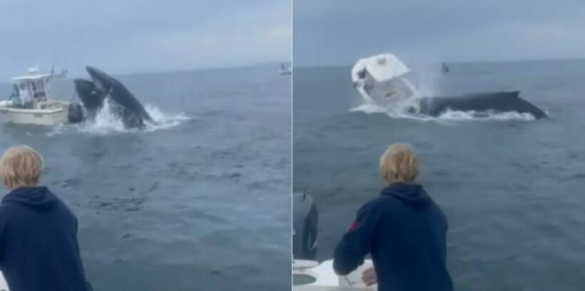 Инцидент произошел недалеко от побережья американского штата Нью-Гэмпшир и случайно был снят на камеру с соседней лодки. Автор ролика ― шестнадцатилетний парень, который каждую неделю выходит в море порыбачить. Он рассматривал в воде рыбу, когда увидел поблизости кита. Дальше произошло неожиданное: горбач резко выпрыгнул прямо на лодку, которая находилась неподалеку. Катер перевернулся, а его пассажиры выпали прямо в воду Атлантики, которая сейчас весьма холодная ― 12 градусов.