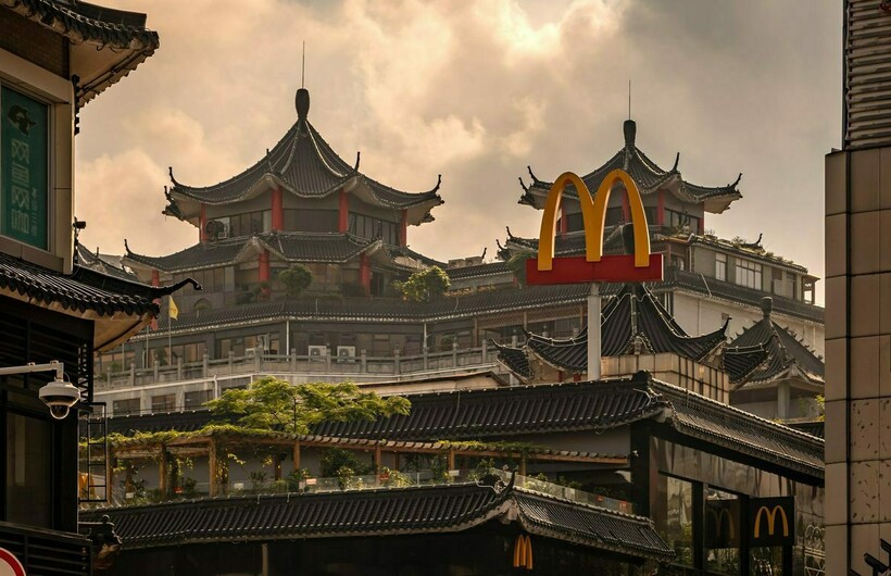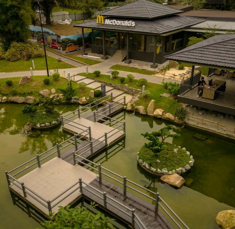 Уютный McDonald's в Сингапуре, открытый в здании в азиатском стиле