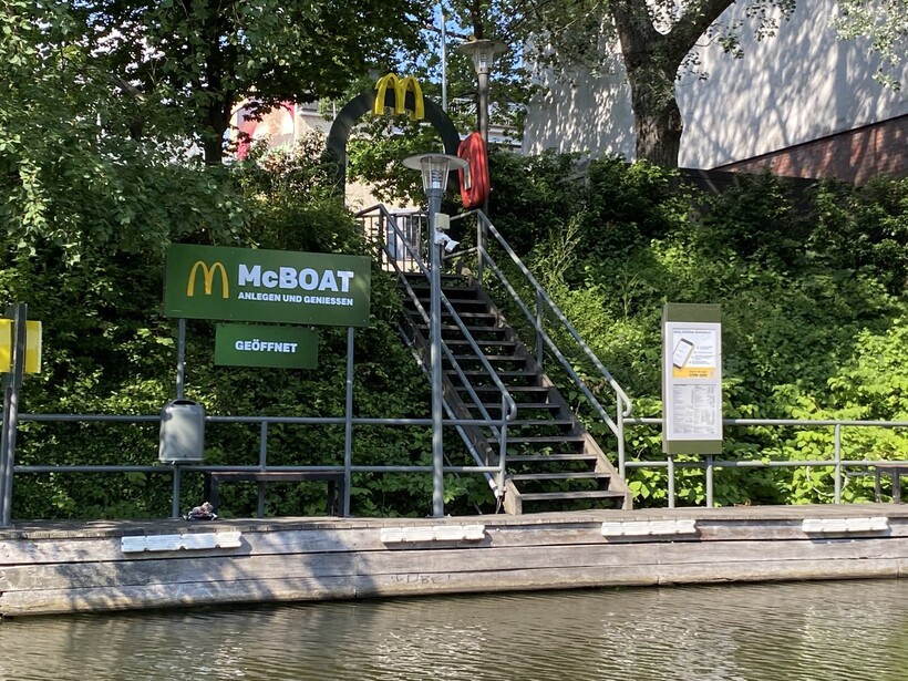 McBoat в Германии на берегу канала, по которому постоянно курсируют лодки