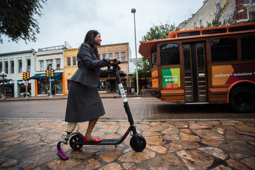 Девушка с протезом на улице какого-то техасского города