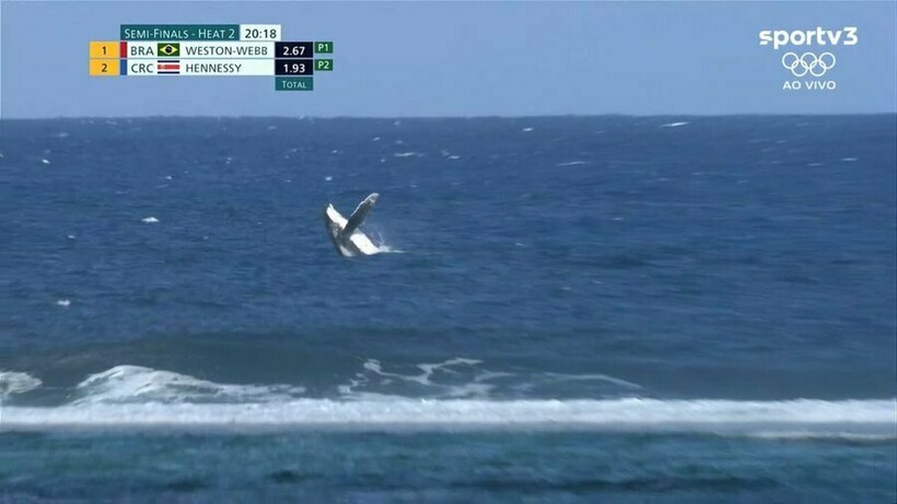 Состязания по серфингу проходили очень далеко от Парижа ― во Французской Полинезии, на Таити. Такие мероприятия всегда впечатляющие, однако зрителям Олимпиады повезло вдвойне: во время гонки произвел фурор горбатый кит, который выпрыгнул недалеко от спортсменов.