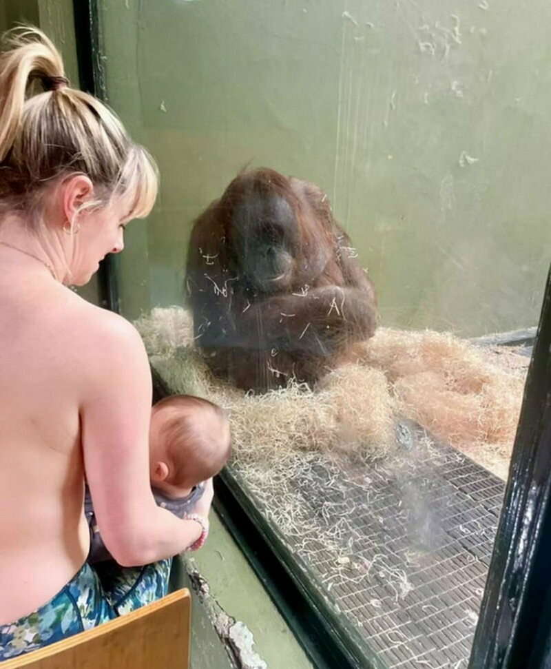 Чтобы научить орангутанга кормить грудью, женщины провели с Муджур и ее новорожденным некоторое время, демонстрируя, как они кормят грудью. Самка наблюдала с интересом и внимательно следила за каждой женщиной, иногда даже жестикулируя руками от эмоций. Некоторые мамы признались, что для них это был волшебный опыт.