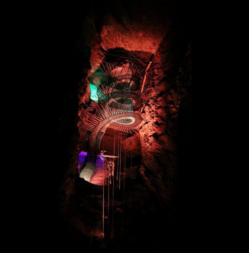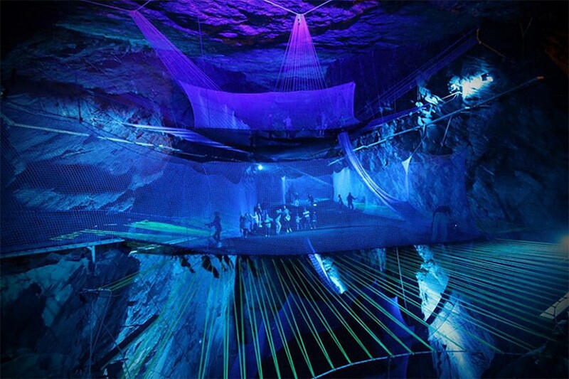 Это очень необычное место, и так как солнечный свет сюда не попадает, здесь все освещается яркими фонариками. Только представьте себе огромные подземные помещения, освещенные яркими красками, где вы прыгаете на огромном батуте по земным недрам. Это очень сильно напоминает виртуальную реальность, только вот отличие в том, что это вполне реальный физический опыт: здесь все можно потрогать руками, послушать эхо и попрыгать под землей.