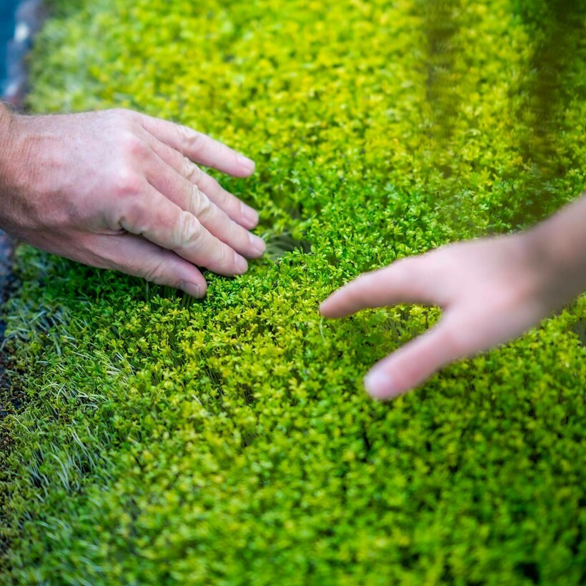 Она также «рисует» на кресс-салате, выращивая его на огромных панелях