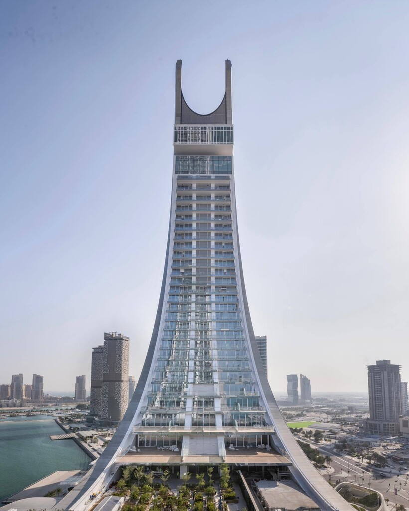 В Дохе есть причудливые футуристические здания: например, мы рассказывали про мечеть Катара, в которой вообще сложно узнать храм. Одно из самых необычных зданий катарской столицы выглядит также удивительно: это здание в форме полукруга, которое стоит на берегу Персидского залива. В нем находятся самые роскошные отели Катара ― Fairmont Doha и Raffles.