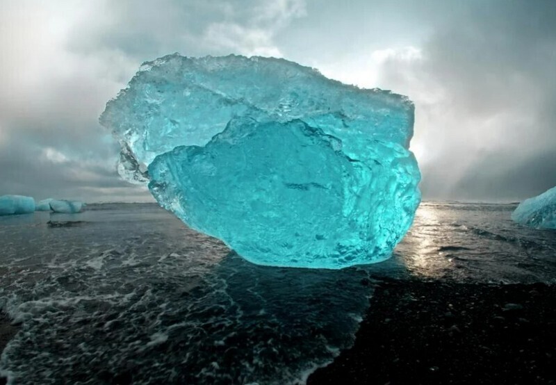 Чем меньше этих пузырьков внутри льда, тем темнее становится лед. Именно по этой причине старые слои льда в айсберге таких насыщенных оттенков. Такое явление можно наблюдать не только в море, но и в горах: многолетние льды также ярко-синего цвета, так как в них просто не осталось пузырьков воздуха.