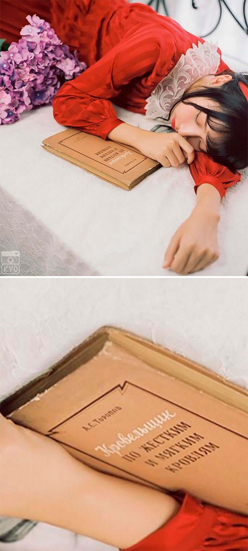 Книги иногда становятся предметами для фотосессий: например, вот тут мы рассказывали о блогере, которая превращает свою библиотеку в инсталляции. Вот и несколько лет назад китайский блогер Ван Хонг смогла привлечь к себе внимание интернет-пользователей, казалось, неплохим способом: любовью к русской литературе. Она фотографировалась со старыми книгами на русском языке и моментально стала популярной сначала в соцсетях Китая, а затем и за его пределами. Вот только если вы подумали, что девушка вздыхала над томиком стихов Пушкина или зачитывалась «Идиотом» Достоевского, то вы ошибаетесь!