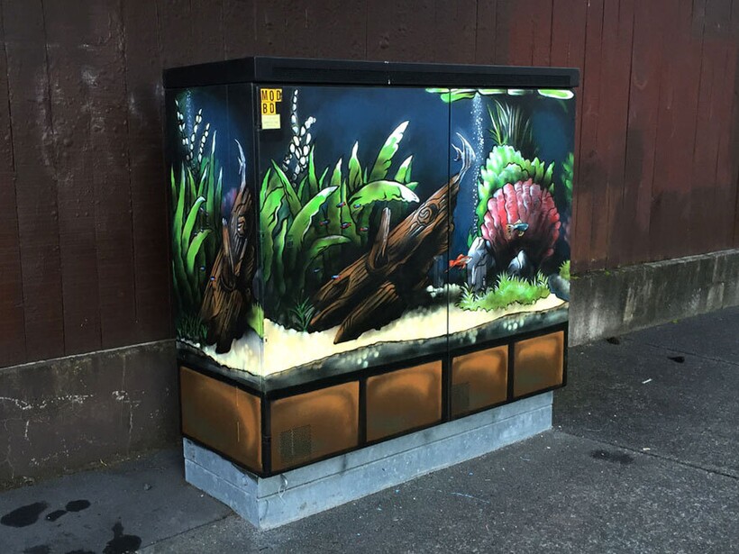 Еще несколько десятилетий назад граффити воспринимали как вандализм, и рисунки на стенах часто закрашивали. Сейчас все изменилось: иногда уличные художники даже создают просветительские работы. Например, мы рассказывали, что русское географическое общество привлекает художников для создания картин об исчезающих видах, известных путешественниках и ученых. Но чаще всего уличные художники становятся дизайнерами и по-настоящему оживляют города. Именно так произошло с художником Полом Уолшем из Новой Зеландии: он разрисовывает скучные интернет-будки в своем родном городе, превращая их в чудесные картины.