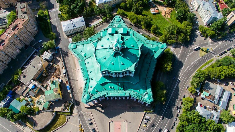 В Москве есть множество потрясающих зданий, начиная от старых сооружений, появившихся пять-шесть столетий назад, заканчивая современными небоскребами. А еще в столице можно найти дома уникальной архитектурной формы. Под привычным углом они выглядят совершенно обычно, но стоит сделать фотографии сверху, в полной мере раскрывается творческий замысел архитекторов.