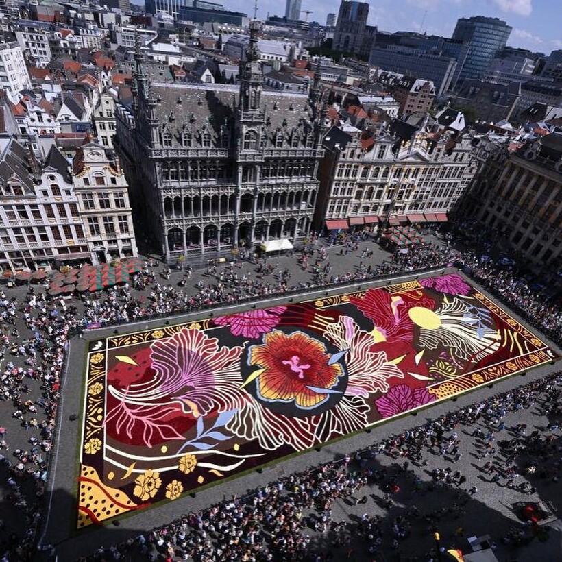 Эта гигантская инсталляция называется Tapis de fleurs, и она давно превратилась в красивую традицию: в бельгийской столице эта клумба появляется каждые два года. Ковер украсили бегонии, георгины, разные травы, ветки и кора деревьев. На создание этого шедевра ушло три дня, и над ним работали сотни волонтеров. Предлагаем вам посмотреть, как выглядит эта восхитительная конструкция.