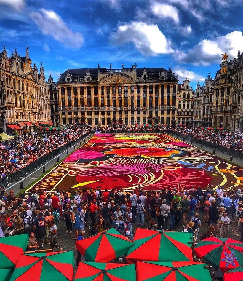 Европейская архитектура не имеет по своей красоте конкурентов. Пожалуй, соперничать с ней может только она же сама, украшенная цветочными клумбами. Главная площадь Брюсселя Гран-Плас, которая восхитительна в любое время года, стала еще прекрасней благодаря цветам: почти всю территорию площади покрыл яркий ковер, сотканный из тысяч цветочков.