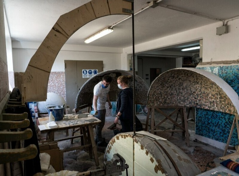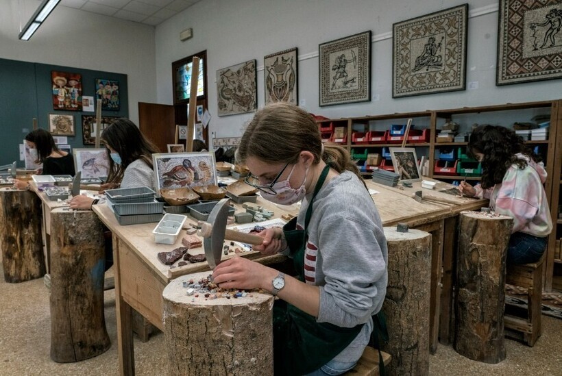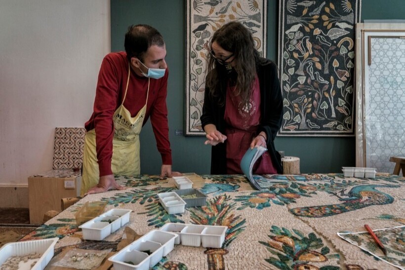 Работа над мозаичной плиткой проходит так же, как и несколько столетий назад