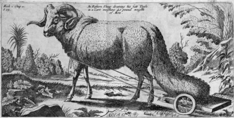 По поводу тысячелетий мы не шутим: курдючные барашки есть на изображениях посуды, найденной в городах шумеров. Также об этих овечках писал Геродот в V веке до н.э.: он рассказывал, что пастухи даже сооружали для животных тележки для хвостов, чтобы барашкам было легче передвигаться. У некоторых животных и сейчас бывают особо выдающиеся округлости: курдюк может достигать 30 кг (хотя обычно его вес разнится от 5 до 10 кг).
