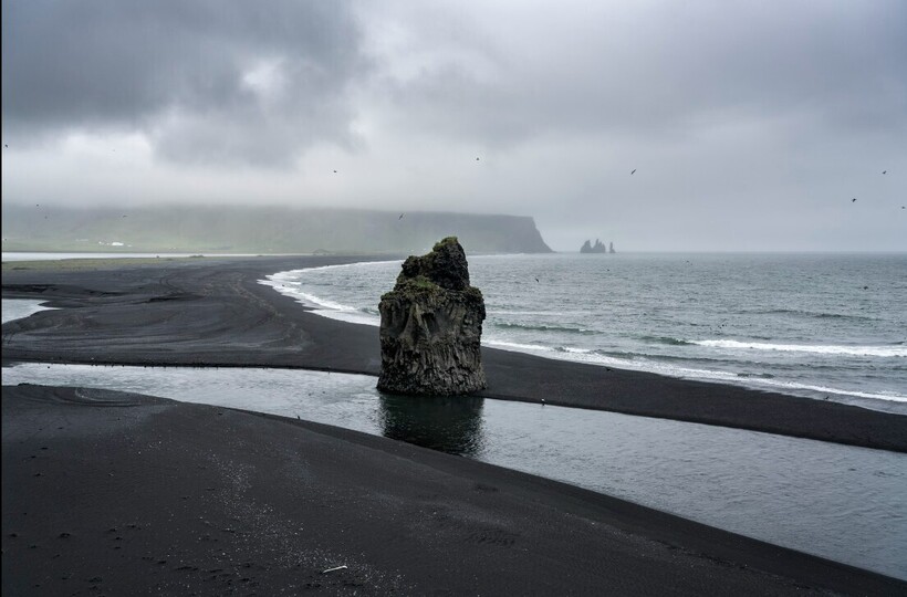 Знаменитый пляж Рейнисфьяра с вулканическим песком